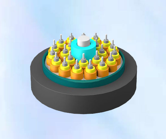 MGFJS 光纜纜芯采用緊套層絞結(jié)構(gòu)。使用由緊套光纖和芳綸加強元件組成的單芯光纜作為子單元,纜芯的中心是一根非金屬加強芯,對于某些芯數(shù)的光纜來說,非金屬加強芯上還需要擠上一層聚乙烯。光纜子單元層絞于中心加強芯形成纜芯,外面縱包涂塑鋼帶,最后擠上一層護套而成。